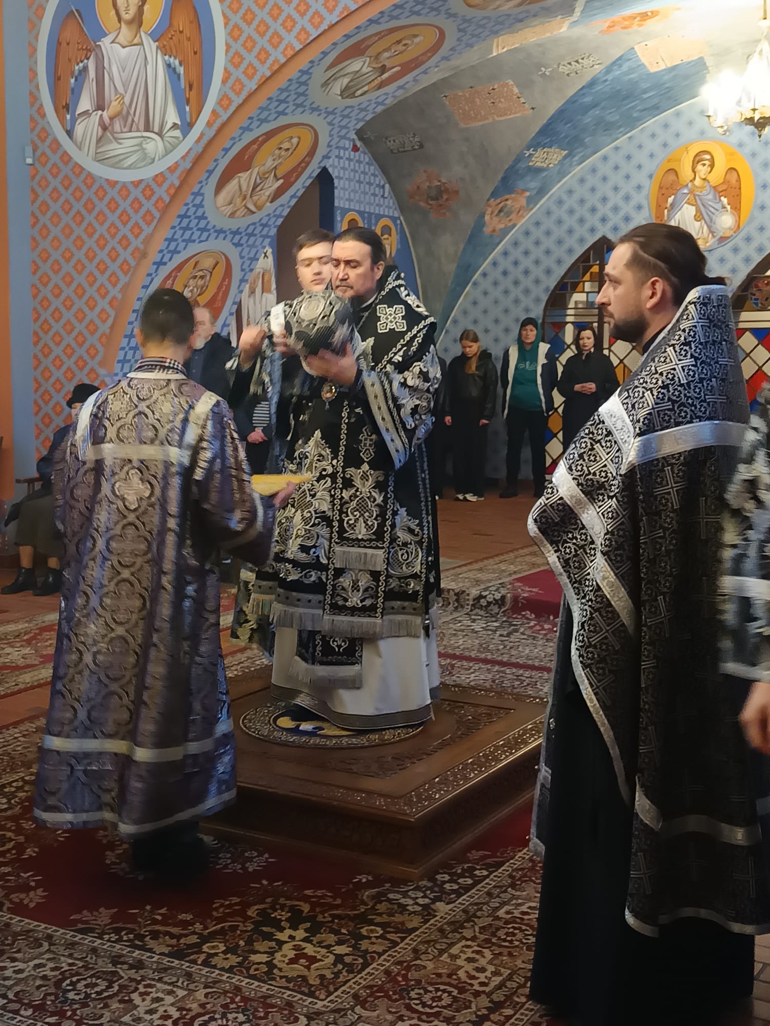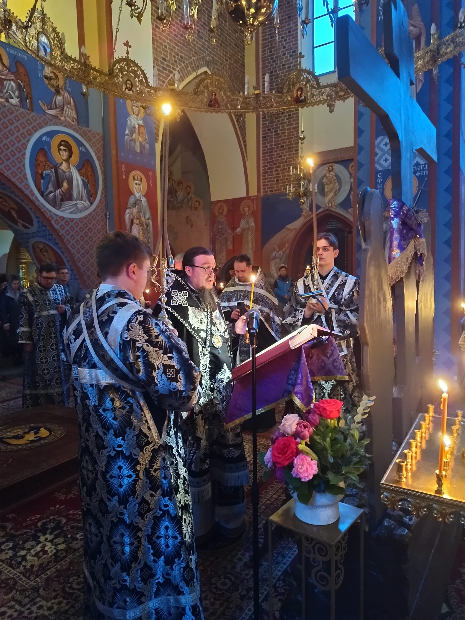 Podczas nabożeństwa, na środku świątyni przed Ukrzyżowaniem (Raspiatiem), Władyka odczytał fragment z Ewangelii wg św. Mateusza (rozdziały 26 i 27) opisujący ostatnie wydarzenia z ziemskiego życia Chrystusa.